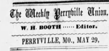 The Friday May 29, 1863 edition of the Perryville Weekly Union reports that guerrillas (Southern partisan fighters) intercepted a Union captain and some other Union troops from Madison County, Missouri were traveling to Patton, Bollinger County Missouri to get some men of the Enrolled Missouri Militia resulting in a small skirmish. Note that the newspaper misspelled Patton as “Paton”.