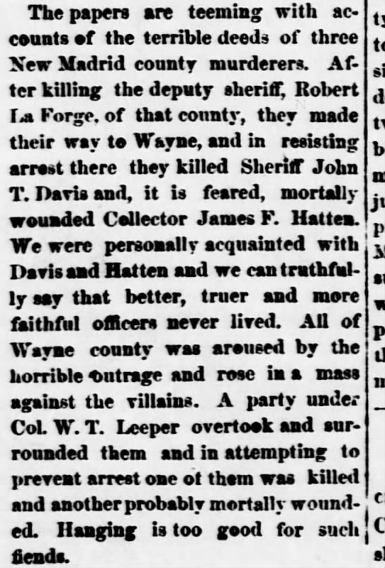 “When the 7th Kansas Cavalry is mentioned most people think of the depredations it committed in Western Missouri; however, the 7th Kansas was very active in Southeast Missouri as well, and every bit as vicious. Thanks to the Reynolds County Genealogy a previously unknown newspaper clip has surfaced that sheds light on how the 7th Kansas viewed Missourians (even from the eastern side of the state).